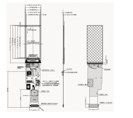 ESHX110RAC12B Diagonal Screen Size adalah 1.1 Inch OLED screen module dengan oncell touch, Resolusi 126X294, 30 pin 4-wire SPI Interface, kecerahan adalah 450c/d, OLED display driving IC adalah RM69310,Panel sentuh IC adalah TMA525B